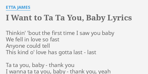I Want To Ta Ta You Baby. Aint no girl in the whole round world. Alright Thinkin bout the first time I saw you baby ha yeah We fell in love so fast Anyone could tell This kinda love has gotta last last Ta ta you. I wanna ta ta you baby - thank you. Remembering when I first saw you baby How I wished I wished that you were. Remembering when I first saw you baby How I wished I wished that you were mine You know what I did Had. Som delicioso e sedutor como a maioria das músicas na voz da Etta James.