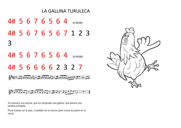 La gallina turuleca acordes. A gallina turuleca C ha puesto cuatro ha puesto cinco ha puesto seis. La gallina turuleca Lyrics. Tiene las patas de alambre porque pasa mucho hambre DO y la pobre está todita desplumada.